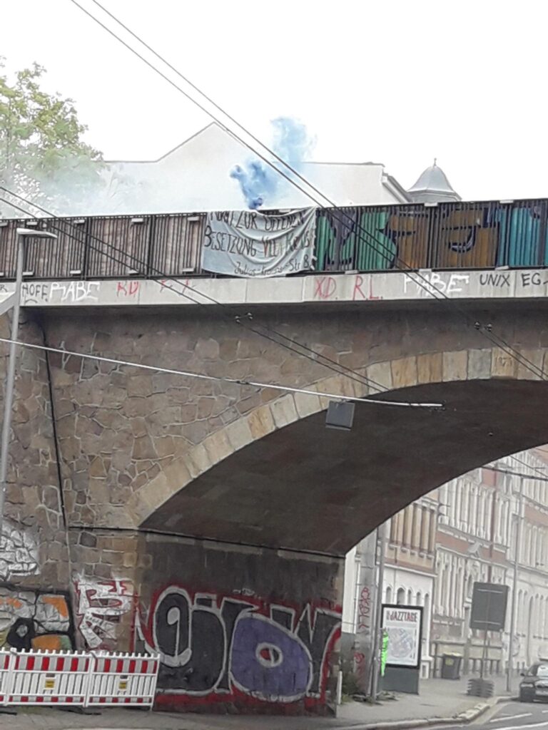 In Solidarität zu der Besetzung „Villa Krause“ wurde am 12.10. ein Bannerdrop an einer Brücke ganz in der Nähe ausgeführt. Die Besetzer*innen freuen sich über diesen solidarischen Gruß! <3