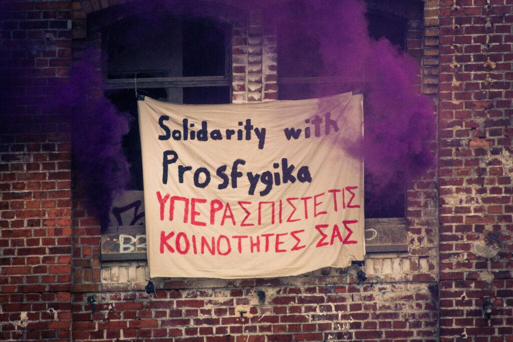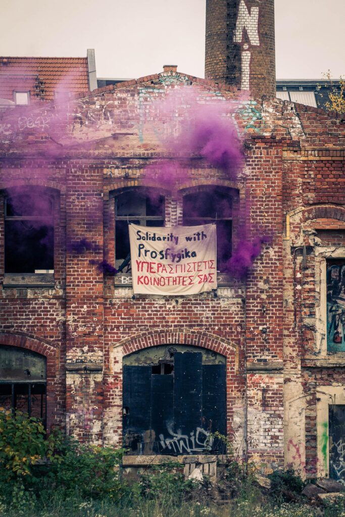 Deshalb senden wir an dieser Stelle solidarische Grüße nach Prosfygika – eine in Athen bereits seit vielen Jahren besetzte community. Prosfygika zeigt uns, dass selbstverwaltetes solidarisches Wohnen möglich ist.